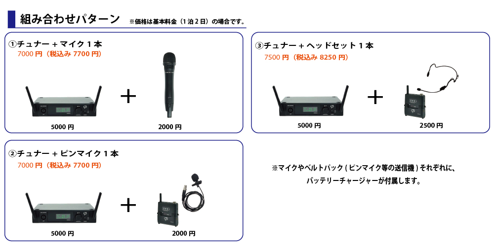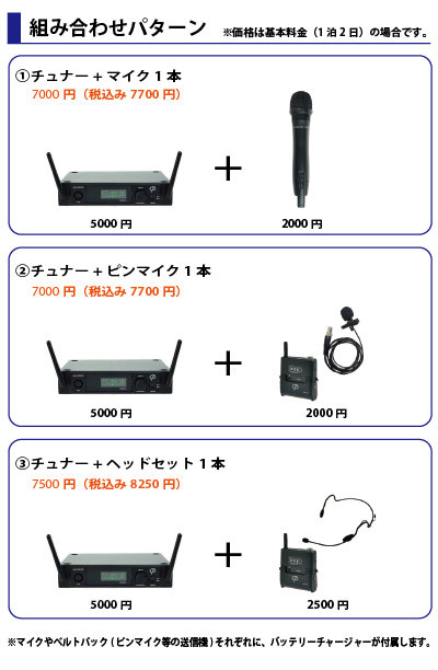 マイク・ピンマイク・ヘッドセットより3パターン組み合わせが選べます!