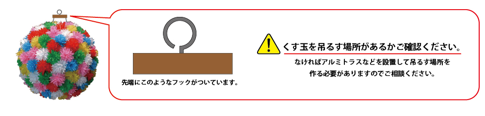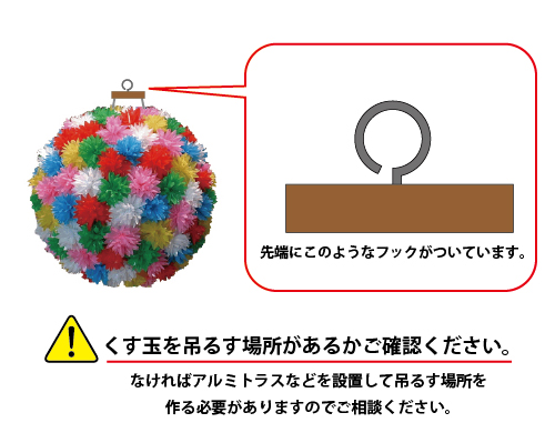 ※上記にプラスでくす玉の垂れ幕、くす玉を吊るすところがない場合には、トラスやエアアーチ等が別途必要となります。それぞれ、サイズや種類によって料金が異なりますので、お問い合わせください。
